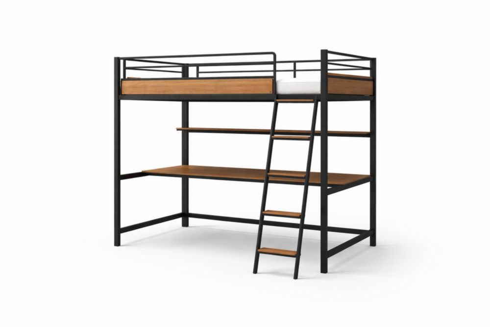 Letto a soppalco con scrivania in Acciaio e legno massello Marrone Nero