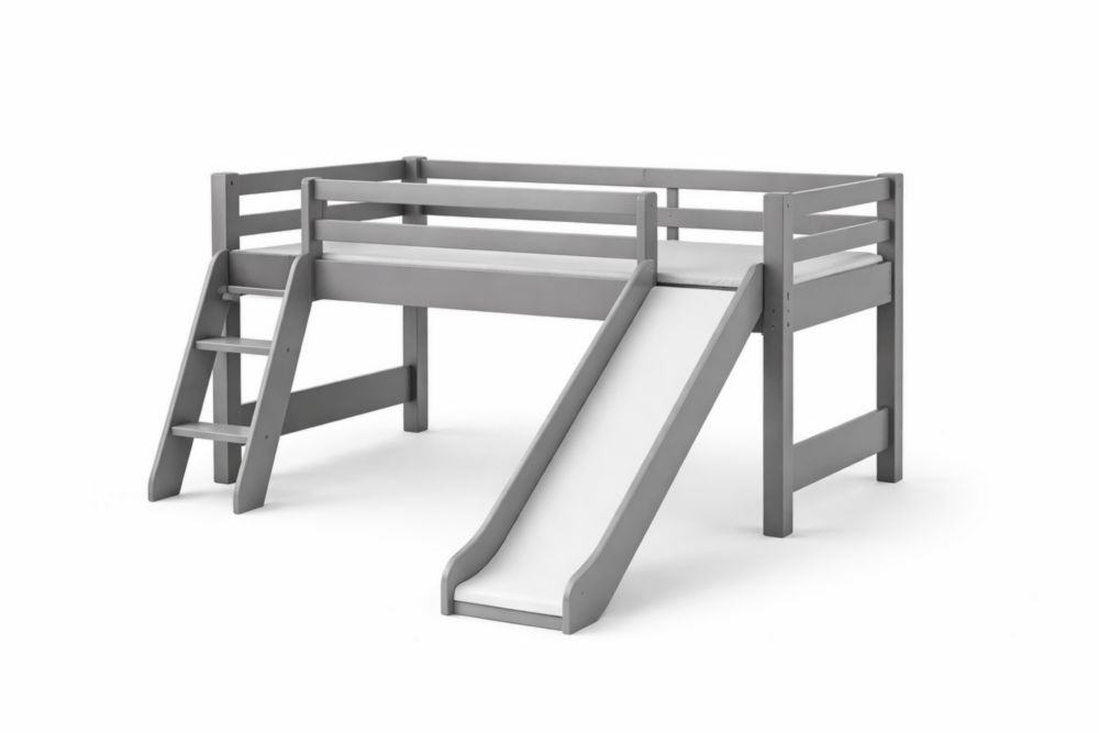 Letto a soppalco in legno massello con scivolo e scala Grigio