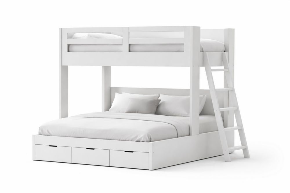 Letto a Castello in Legno Massello Bianco con Cassetti