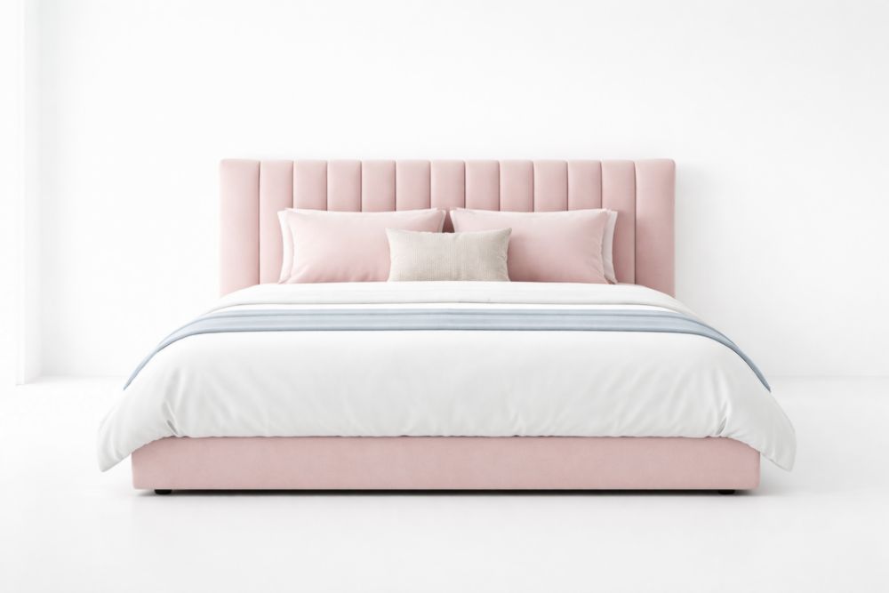 Letto Matrimoniale in Velluto Rosa con Cuscini