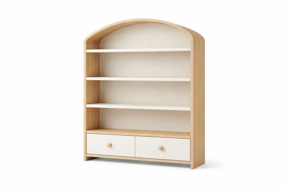 Libreria con Ripiani e Cassetti in Legno MDF Bianco/Naturale