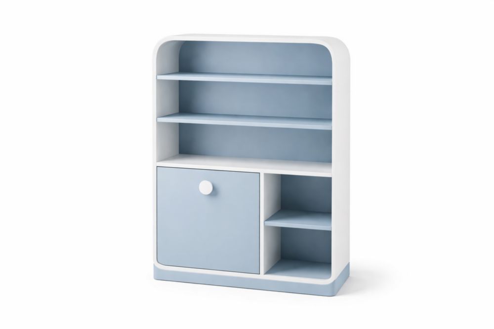 Libreria in MDF bianco e azzurro con scaffali multipli Altezza 120 cm x Larghezza 60 cm x Lunghezza30 cm