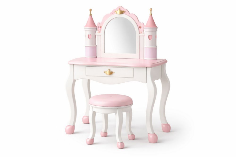 Set Toeletta per Bambini con Specchio e Sgabello in MDF Rosa