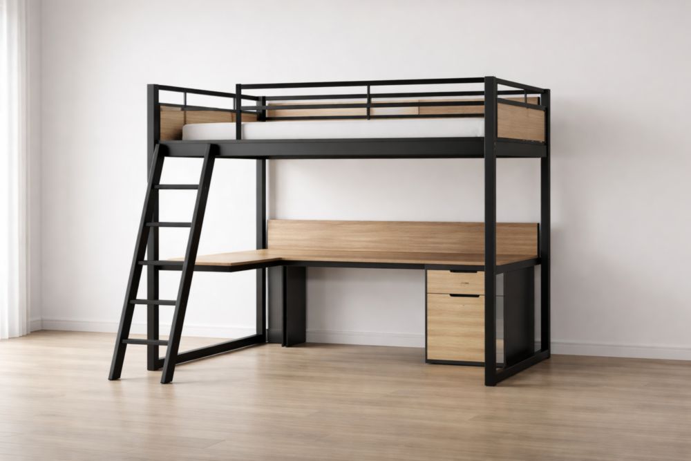 Letto a soppalco con scrivania in Compensato e acciaio nero