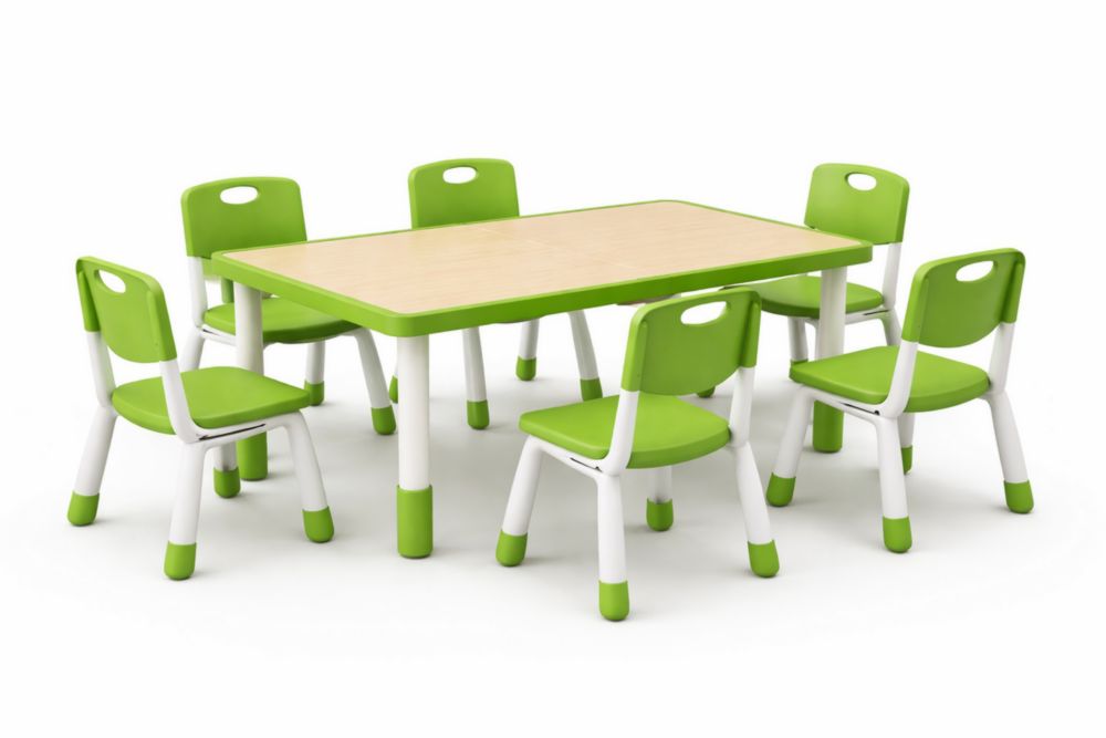 Colore tavolo: Superficie color legno chiaro, gambe Verde/Bianco